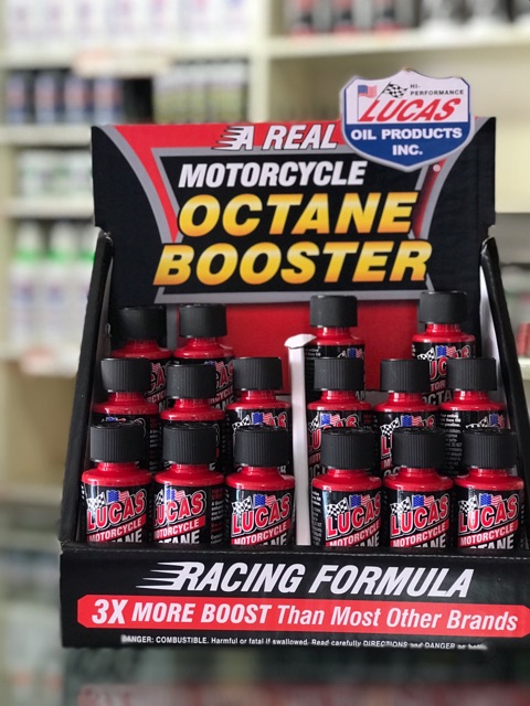 Lucas Motorcycle Octane Booster - A Real Octane Booster. Designed to promote clean fuel burn for fewer emissions is Lucas Oils octane booster. A typical octane booster will.